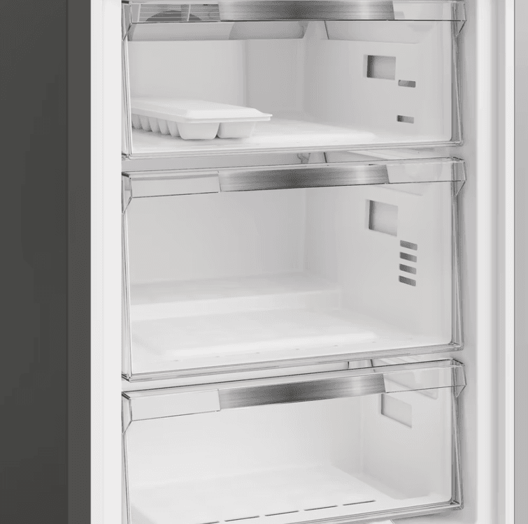 Even Flow technology also gently distributes consistent, cool air across every shelf, helping to maintain a stable temperature that preserves the taste and nutrients of your fruit and vegetables while reducing weight loss. Meanwhile, our quiet and durable Inverter Compressor immediately reacts to the door being opened, swiftly restoring a stable temperature to keep your food fresh and energy bills lower. The compressor has been rigorously tested by independent experts and received a 25 year lifetime certification*, giving you outstanding performance you can rely on day after day. The Fast Freeze function allows you to quickly freeze your food. It means when you return home with groceries and place them into your freezer, the function will rapidly drop the temperature of the appliance to help maintain the freshness of your food. With a handy 90° door hinge, this fridge freezer fits perfectly into any kitchen layout. Whether it°s placed against a wall or tucked into a corner, the door opens fully, helping to maximise the space in your home.