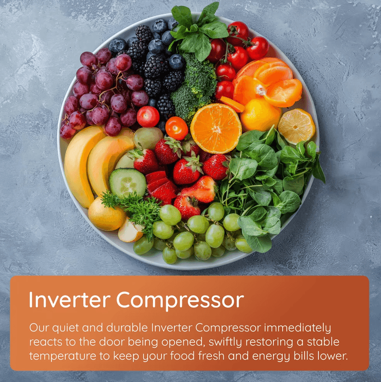 • Energy-efficient and quiet Inverter Compressor maintains a steady temperature and reduces energy use