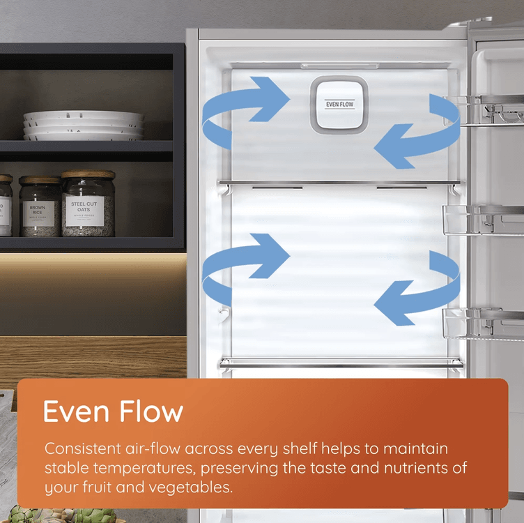 • Even Flow technology circulates cold air evenly to keep food fresher for up to 30 % longer
