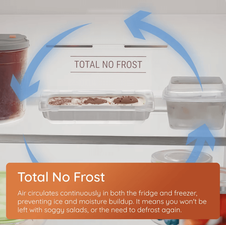 • Total No Frost technology prevents ice build-up, eliminating the need for manual defrosting