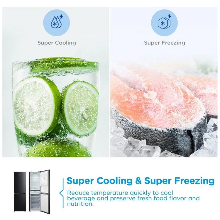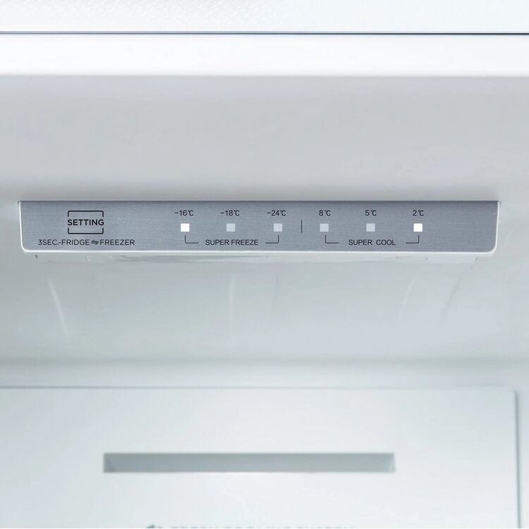 This appliance is tailored for those seeking efficient and convenient food preservation at home. Its reversible door enhances installation flexibility, accommodating various kitchen layouts. The Super Cool and Super Freeze functions rapidly chill and freeze food, helping maintain freshness for longer durations, minimising waste and saving money.