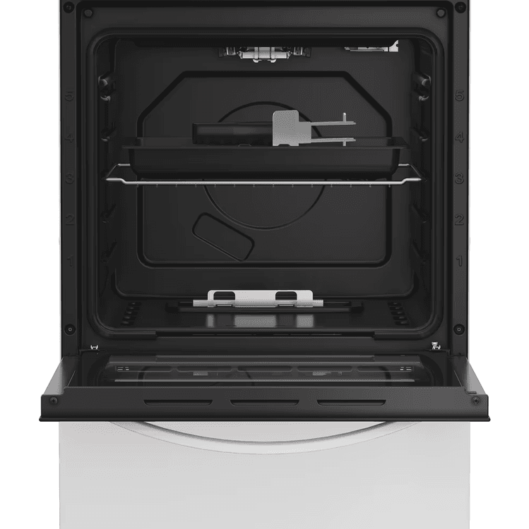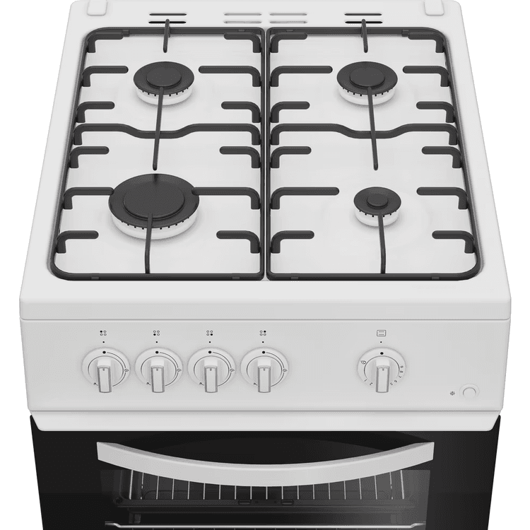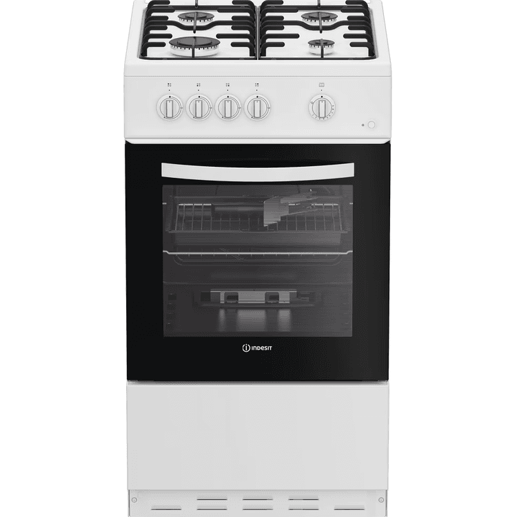 Enjoy making delicious dishes for the whole family with this Indesit freestanding cooker. Finished in classic white, it brings a stylish yet timeless touch to your kitchen. This 50cm cooker is has a 55L oven, giving you plenty of space to cook all kinds of meals. Plus, the oven light lets you check on your food without opening the door. The 4 burner gas hob lights up instantly at the press of a button with Auto Ignition, and the sturdy enamel supports keep your pans stable for hassle-free cooking. The Fast Boil feature quickly boosts the heat to get your water boiling in no time. With an impressive A energy rating, this cooker is as efficient as it is easy to use - perfect for everyday meals.