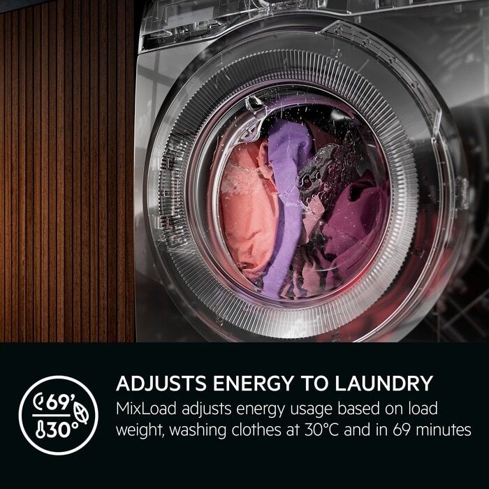 MixLoad adjusts energy usage and drying time based on load weight when cleaning daily mixed loads. MixLoad washes clothes at 30°C and in just 69 minutes. Go with MixLoad for optimal performance, and effectively cleaned clothes.