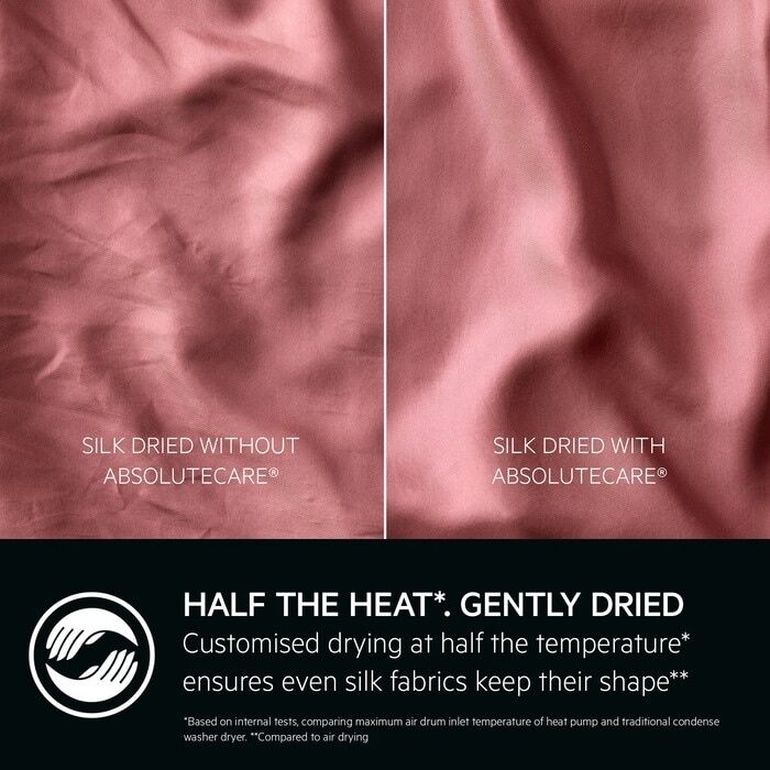 The Care drum lets garments glide smoothly thanks to its elevated cushion-like drum pattern and optimised lifter paddle. A thin film of water covers the holes during washing. Providing your fabrics with an even gentler laundry experience.