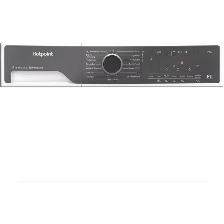 This Hotpoint freestanding Washer Dryer features: outstanding 9kg washing capacity. Spacious 6kg drying capacity. A fast, resource-efficient 1400 revolutions per minute spin speed. White colour.