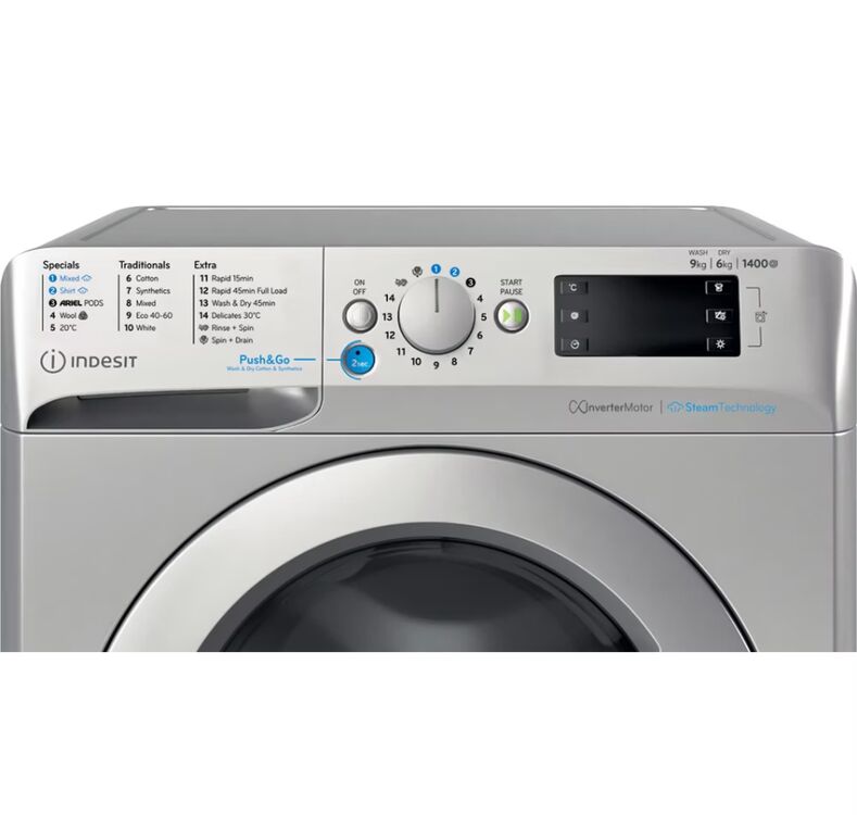 INDESIT BDE96436SVUK Push&Go 9KG/6KG 1400 Washer Dryer - Silver additional 1INDESIT BDE96436SVUK Push&Go 9KG/6KG 1400 Washer Dryer - Silver additional 2INDESIT BDE96436SVUK Push&Go 9KG/6KG 1400 Washer Dryer - Silver additional 3INDESIT BDE96436SVUK Push&Go 9KG/6KG 1400 Washer Dryer - Silver additional 4INDESIT BDE96436SVUK Push&Go 9KG/6KG 1400 Washer Dryer - Silver additional 5INDESIT BDE96436SVUK Push&Go 9KG/6KG 1400 Washer Dryer - Silver additional 6