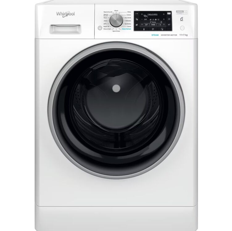 WHIRLPOOL FFWDD1174489BSVUK 11kg/7kg 1400 Spin Washer Dryer - White