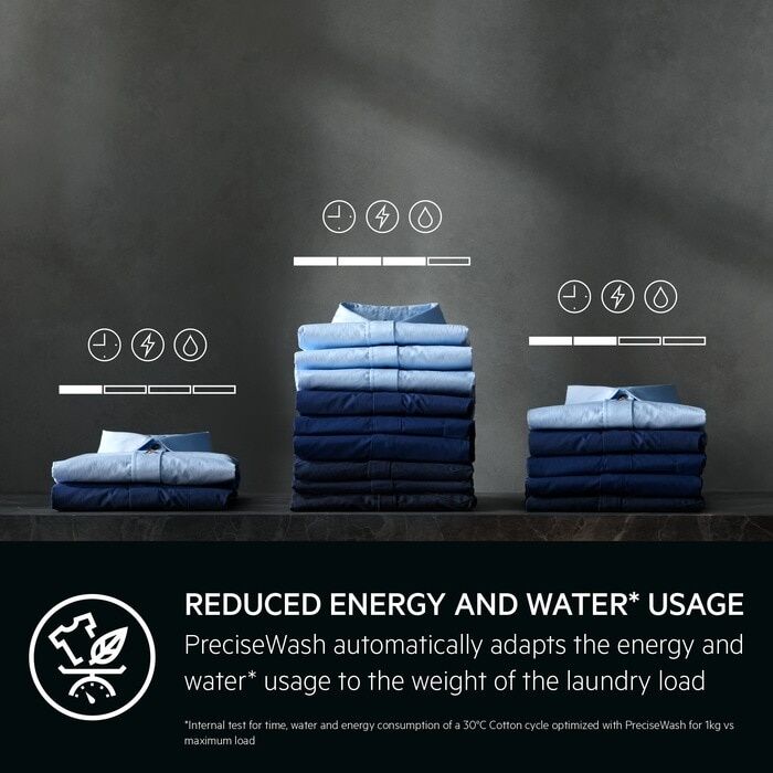 Precisewash reduces up to 40% of time, water and energy* by optimising every load