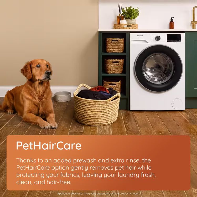 This Hotpoint freestanding front loading Washing Machine features: a fast, resource-efficient 1400 revolutions per minute spin speed.