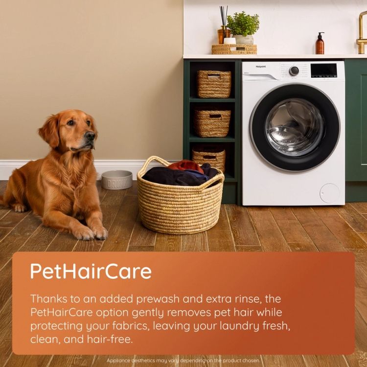Discover the Hotpoint HEV841WUK washing machine, expertly designed with an 8kg capacity and a powerful 1400 rpm spin speed, all wrapped in a clean white finish. This advanced model features the PetHairCare programme, expertly removing pet hair with care to protect your fabrics. Its innovative Anti Stain technology targets 24 common stains by combining elevated temperatures, prolonged rinsing, and specialised drum movements, delivering outstanding cleanliness with every wash.