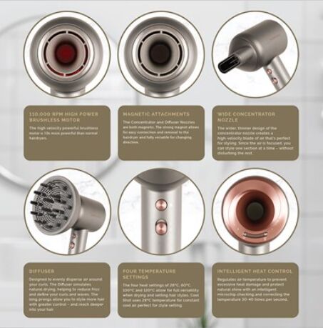 | Features | 3 Accessories Including Volumizing Diffuser |