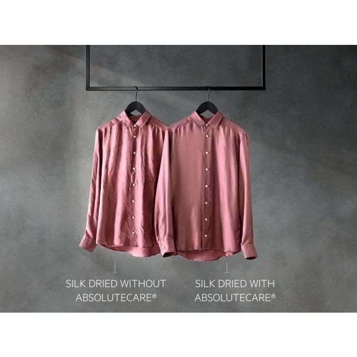 AbsoluteCare® uses heat pump technology, along with precise drum movements and temperatures to safely dry your clothing, even your delicate items. Ensuring wool won’t shrink and silk doesn’t lose shape. It restores water protection for outdoor clothes and is Woolmark certified.
