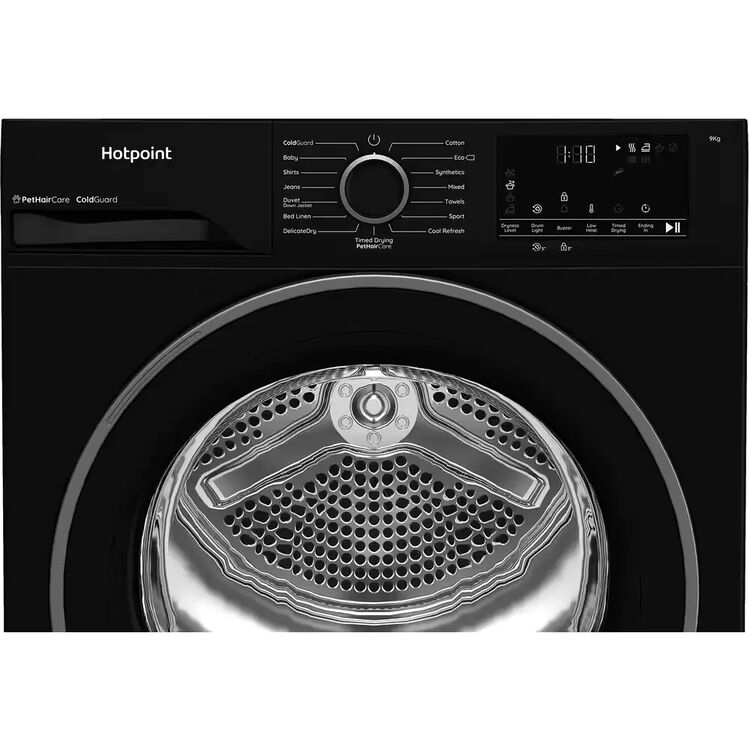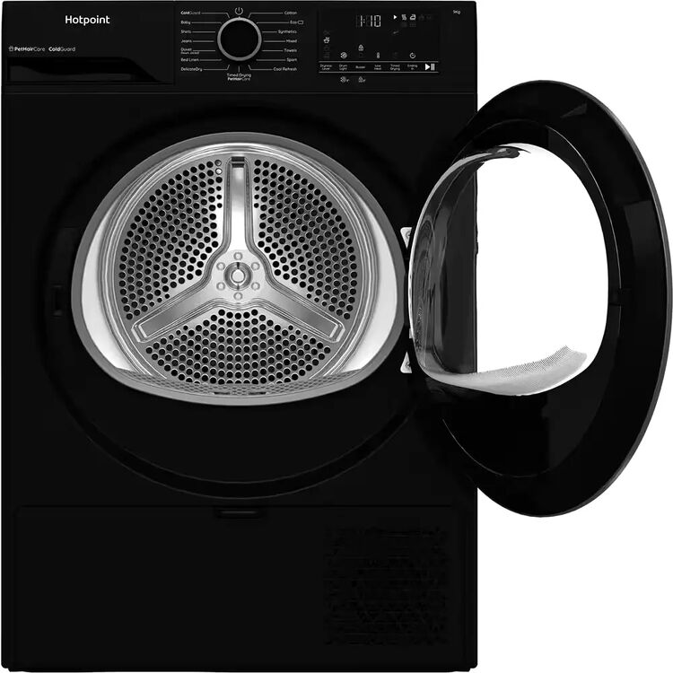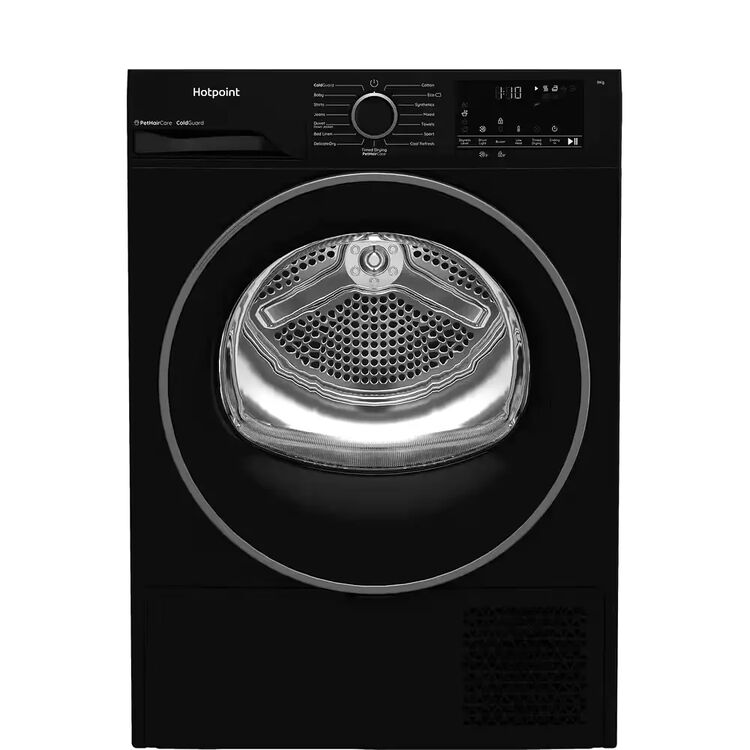 Make every day the perfect drying day thanks to this Hotpoint heat pump tumble dryer. With a bold black finish and 9kg capacity, it's a stylish and practical addition to any home.