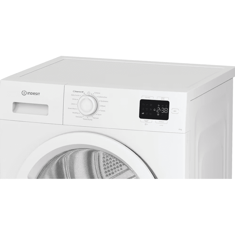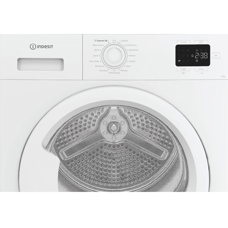 With its 8Kg drum capacity, this Indesit dryer provides all the space you need for your laundry.
