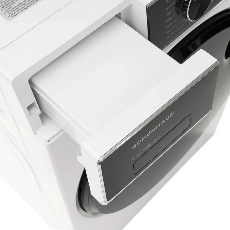 Dry your clothes effortlessly with the TDSHF018A3W tumble dryer from Schönhaus. With heat pump technology and an 8kg capacity, it’s ideal for busy households.