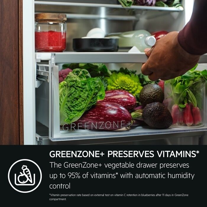 The 7000 GreenZone Fridge Freezer has a dedicated sealed drawer that maintains humidity at an ideal level, which manages excess condensation and helps protect food from spoiling. This preserves up to 95% of vitamins by protecting produce with the right amount of humidity.*
