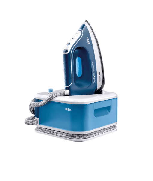 The new Braun CareStyle Compact Pro delivers 2x faster ironing with 3x more steam** and FreeGlide 3D Technology in a compact size – making it the best performing and most powerful model in the CareStyle Compact range. It combines the power of a steam generator with practical compact design and convenience saving you 50% time and space*.