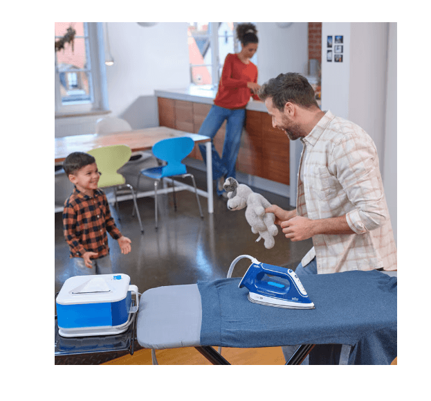 *Saves 50% time vs. Braun TS1 steam iron and saves 50% space vs. Braun IS7144 steam generator iron.