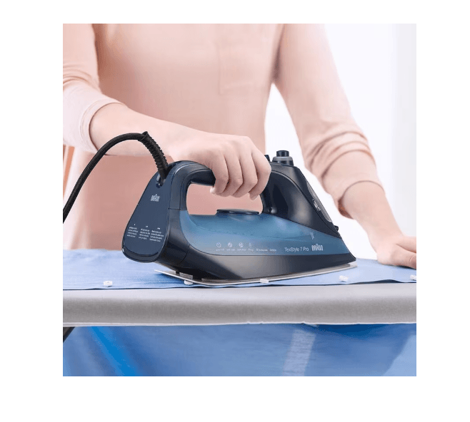 The TexStyle 7 Pro is Braun’s best performing steam iron. The TexStyle 7 Pro series features the world’s first FreeGlide 3D Technology soleplate. Glide backwards over any obstacles such as buttons, pockets and zippers – without getting stuck.The unique EloxalPlus coating on the soleplate provides extraordinary glideability to accelerate the ironing process.The TexStyle 7 Pro has been upgraded with a soft grip handle for more comfort. Now available in new colours and with increased power up to 3100 watts.