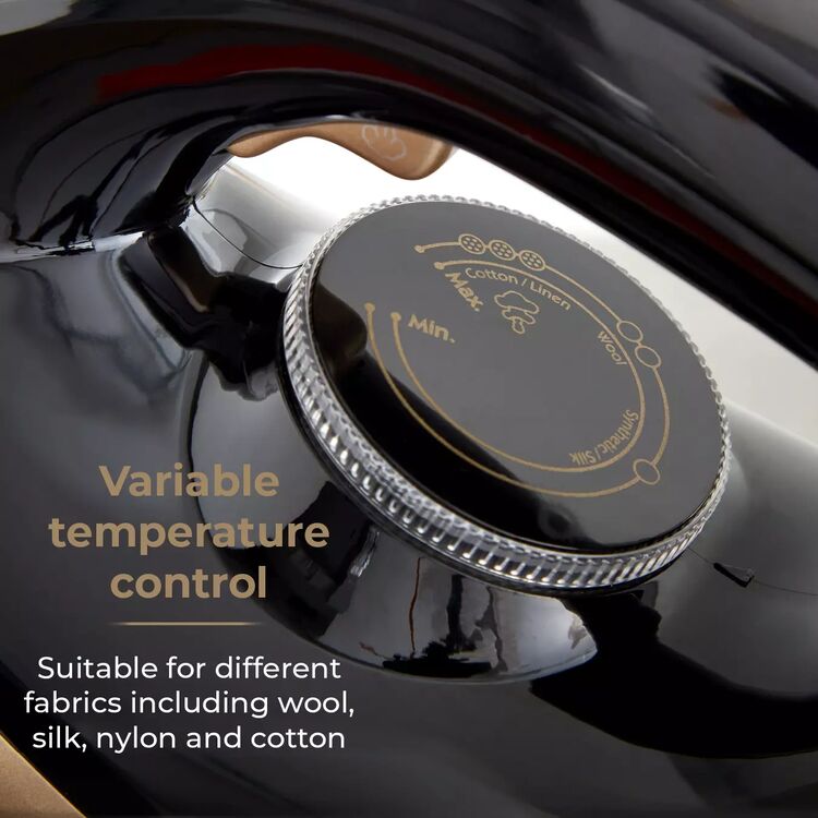 Provides 80g/min continuous steam with added steam shot button to smooth out stubborn creases across a range of fabrics. The manual dial lets you adjust the temperature to suit different materials including wool, silk, nylon and cotton.