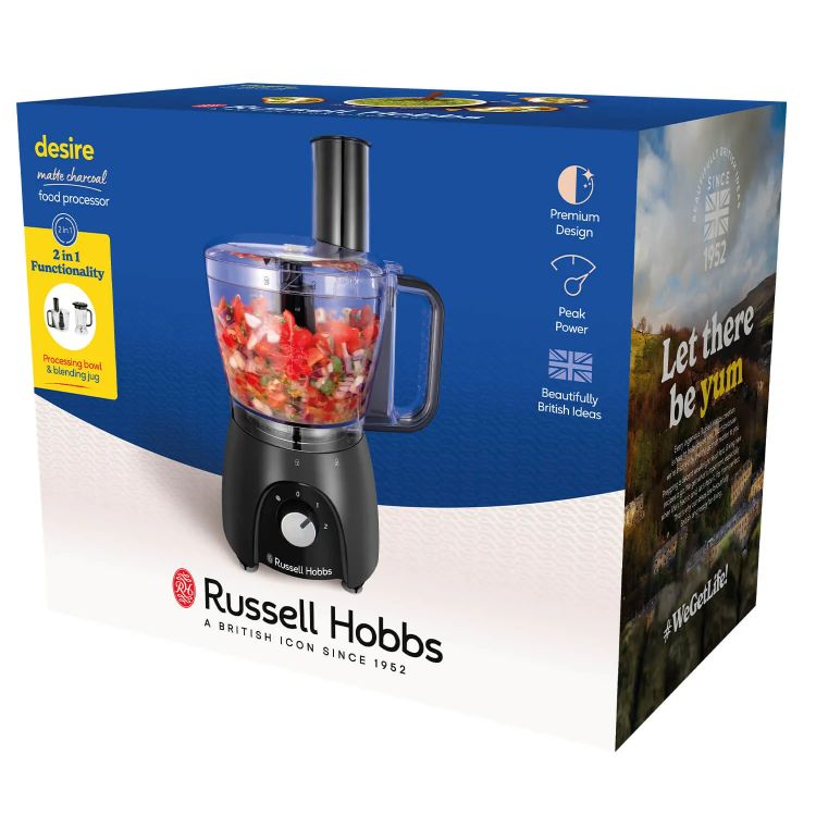 For all your food preparation needs in one versatile, fast and efficient appliance, reach for the Russell Hobbs Desire Matte Charcoal Food Processor.