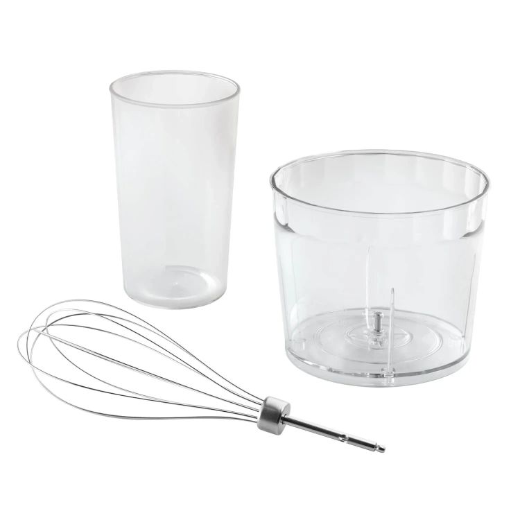 The 1L chopping bowl has a generous 500ml working capacity and there is 600ml of whisking and blending space in the beaker - enough to satisfy even the largest of households.