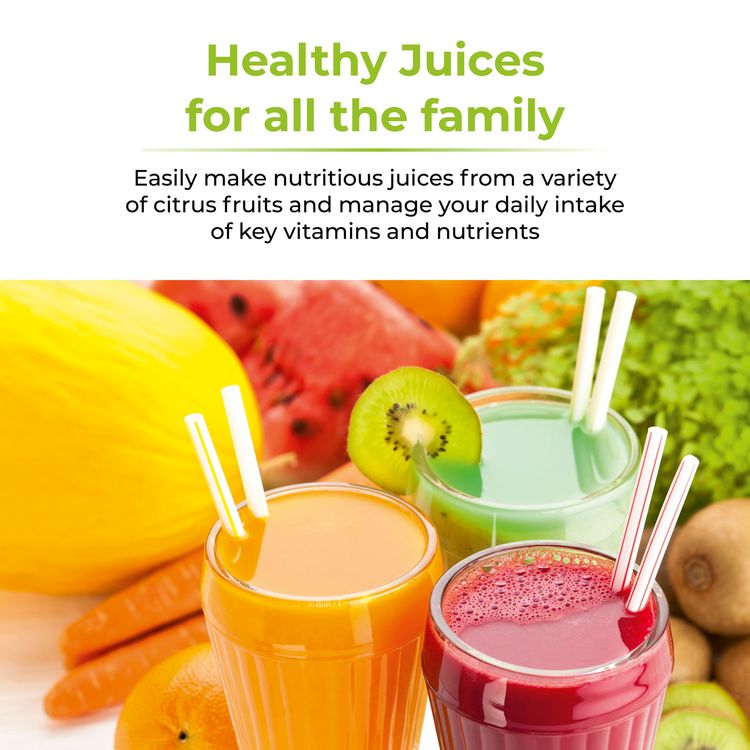With a compact modern design, this Citrus Juicer is ideal for making nutritious and tasty juices quickly and easily from a wide variety of citrus fruits such as orange, lemons, limes and grapefruit. Dual cones mean you can extract as much juice as possible, with large small cones allowing you to use a greater variety of fruit. The cones also work as an adjustable pulp filter, they extract the juice remove the pulp for smoother drinks to suit all preferences. An anti-drip spout prevents drops from spilling on the worktop to reduce spillages mess. The juicer comes with a dust cover and storage compartment to help keep all the parts together when not in using, reducing clutter on the worktop. The cones and anti-pour spout are easy to remove and dishwasher safe for a fuss-free clean, whilst the motor base can be wiped with a damp cloth to maintain the pristine finish.