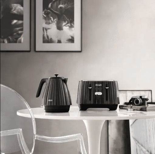 Wake up to creativity each morning with a kettle that embodies Italian craftsmanship, the De'Longhi Ballerina. Enrich your living space with its elegant Furnace Black shade inspired by Venetian glasswork, the perfect reflection of your personality. With 1.7l capacity, a detachable base for cordless use and a washable removable filter, this stylish kettle is a joy to use and a pleasure to admire.