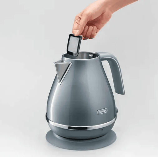 The De'Longhi Icona Metallics electric kettle delivers all the convenience you need in an attractive package. Easily fill to the desired level using the transparent water level indicator, and enjoy easy cleaning thanks to the removable anti-scale filter. The glossy azure finish of this kettle will add a tasteful splash of colour to your kitchen.