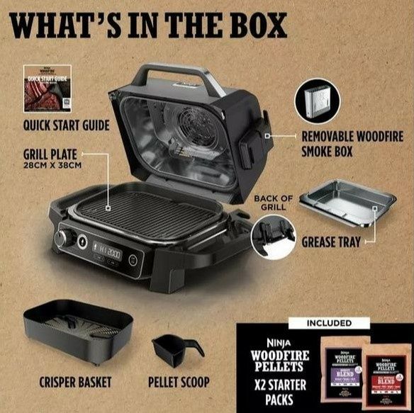 Your grill includes a Wood Pellet Starter Pack of each flavour, and a perfectly-sized scoop. Additional Ninja Woodfire Pellets are available to buy direct from Ninja.