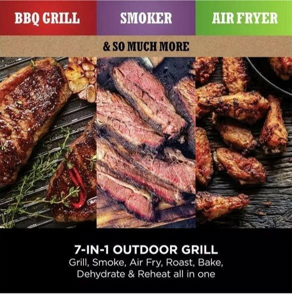 FeaturesGrill, Smoke, Air Fry, Roast, Bake, Re-Heat and dehydrate
