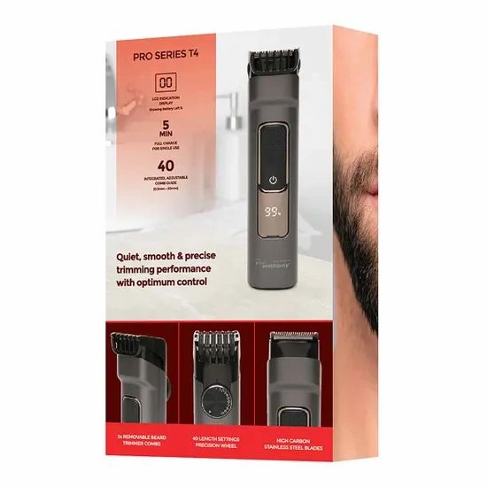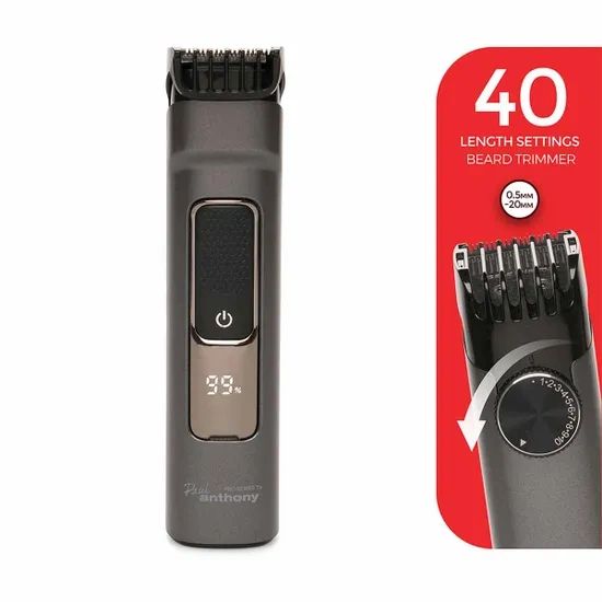 Keep your beard and stubble looking sharp with the Paul Anthony Pro Series T4 Beard & Stubble Trimmer. Featuring USB-C charging, it’s ready to use after just five minutes of charge, while a full two-hour charge delivers up to 90 minutes of uninterrupted grooming. The LCD display keeps you informed of battery life, and with two adjustable combs offering 20 settings each, you can achieve a precise trim from 0.5mm to 20mm.