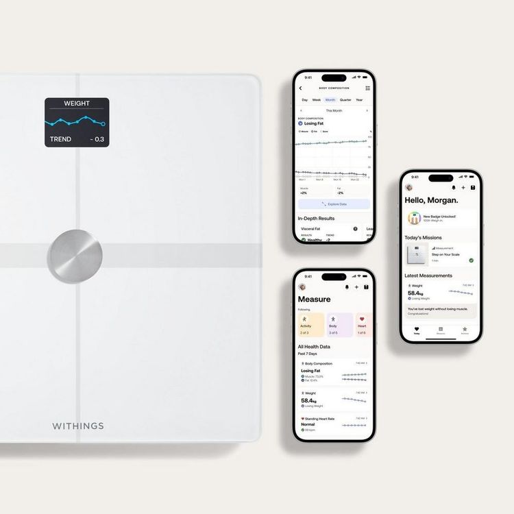 You can also follow your heart rate at each weigh-in, track hydration levels, see your basal metabolic rate and age, and view your BMI.