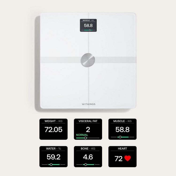 The WBS13W from WITHINGS are smart scales designed to provide a powerful assessment of your body for monitoring daily health. Track your weight to within 50g and achieve your fitness goals faster or analyse body composition to help increase muscle mass and reduce fat percentage according to your targets.