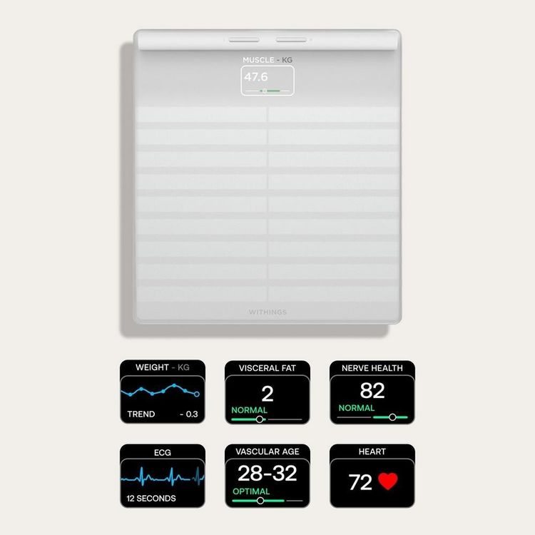 Discover a revolutionary health check-up at home with Body Scan smart scales from WITHINGS. Scan your whole body in just 90 seconds from a simple weigh-in. Track your muscle and fat percentage in 3D and monitor your progress over time in three key areas – legs, torso, and arms.
