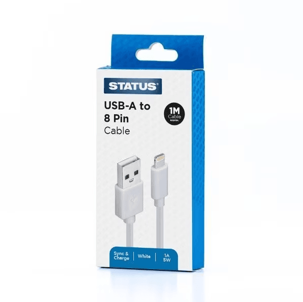STATUS CT8P1MPVCWL10 1m USB Type C to 8 Pin Sync and Charge Cable